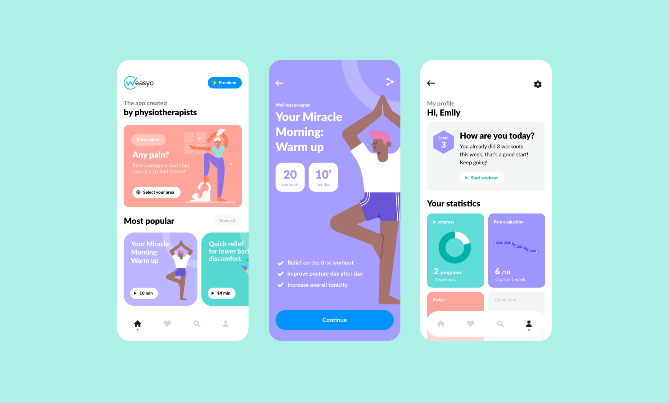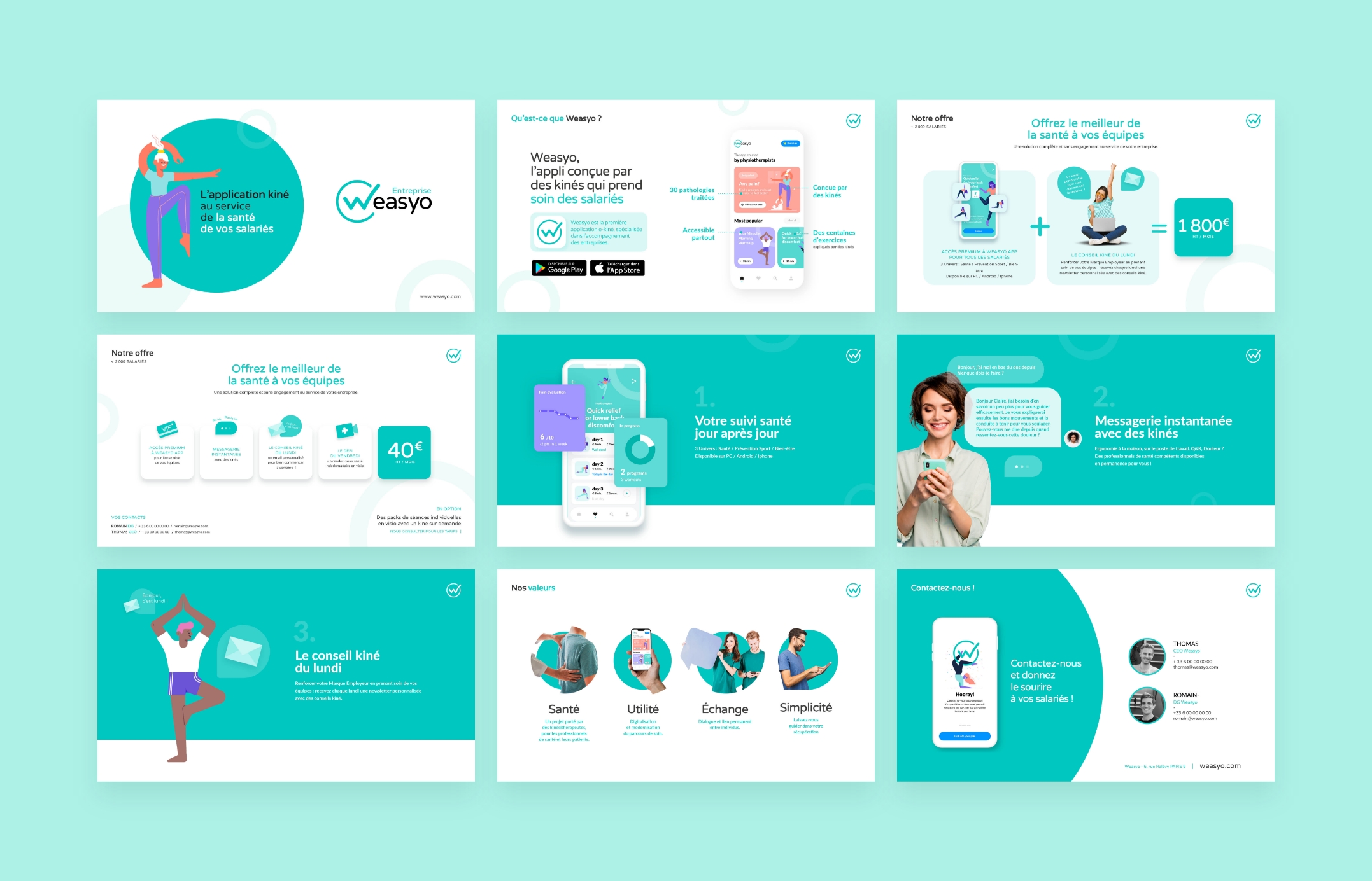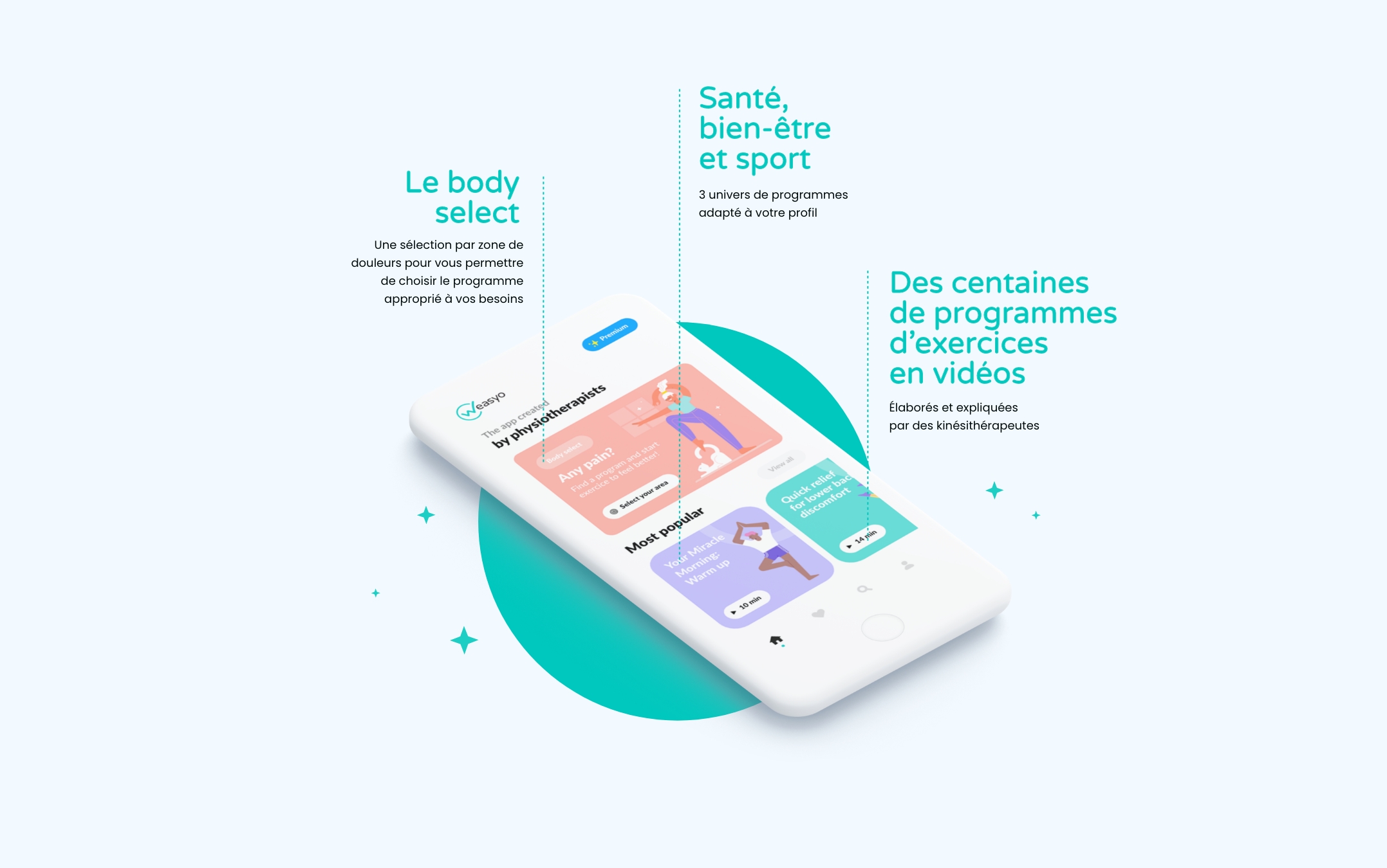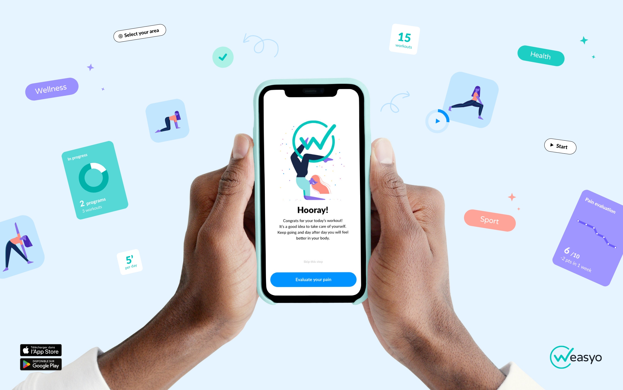 Weasyo est une application de e-sante qui permet de réaliser à la maison ses exercices de kinésithérapie. Pour soigner une douleur, en prévision pour les sportifs ou pour son bien-être, l’application propose des programmes vidéos adaptés à tous les besoins.